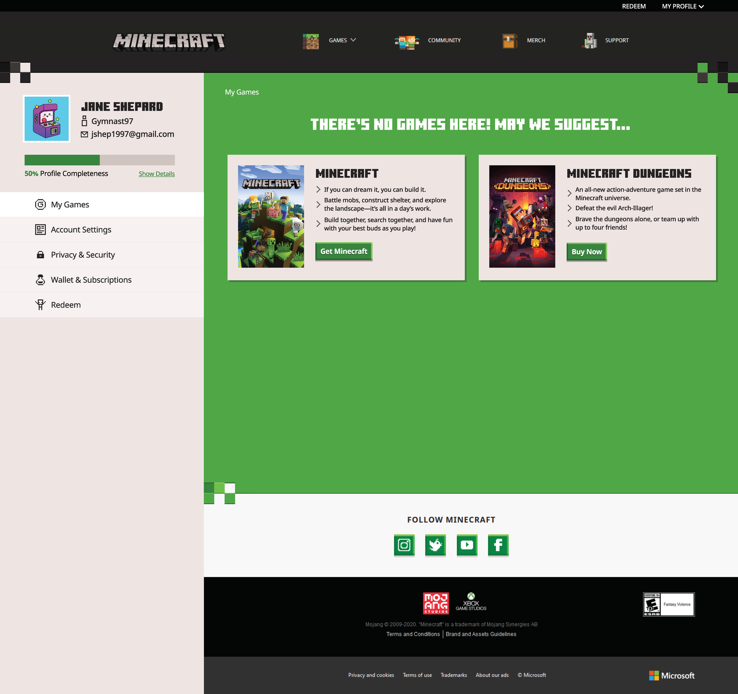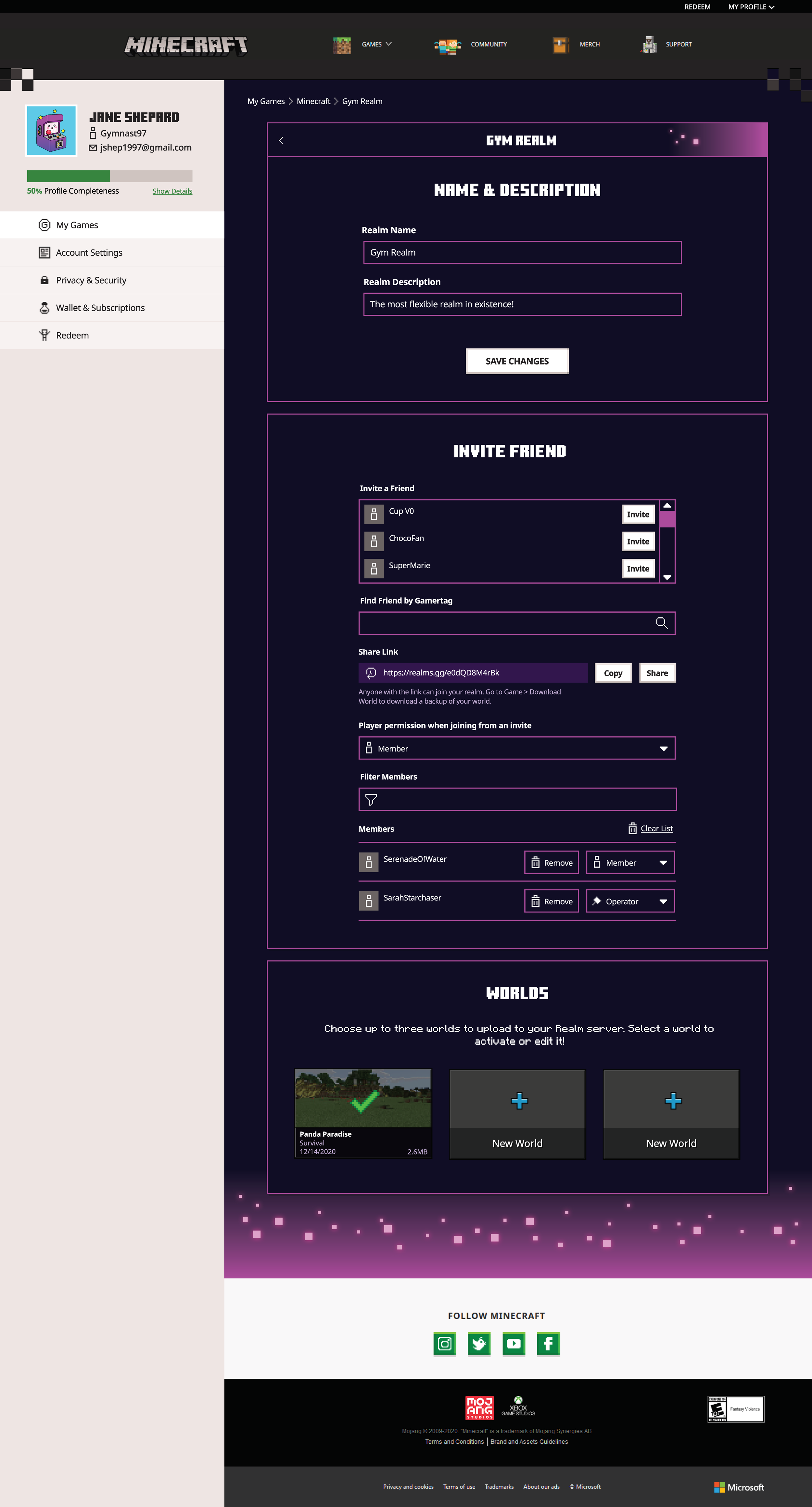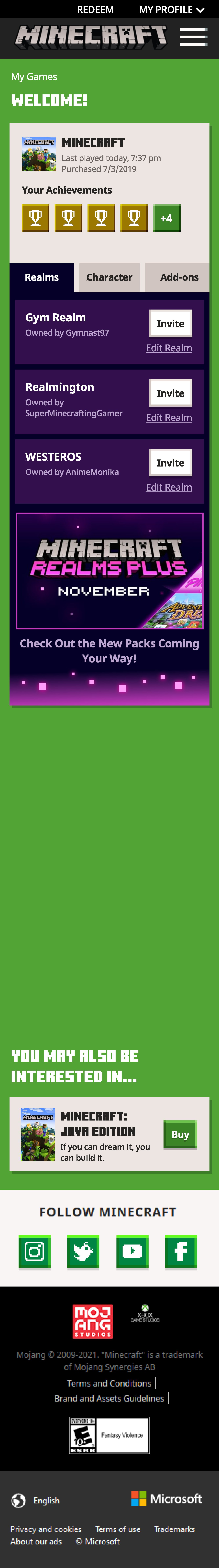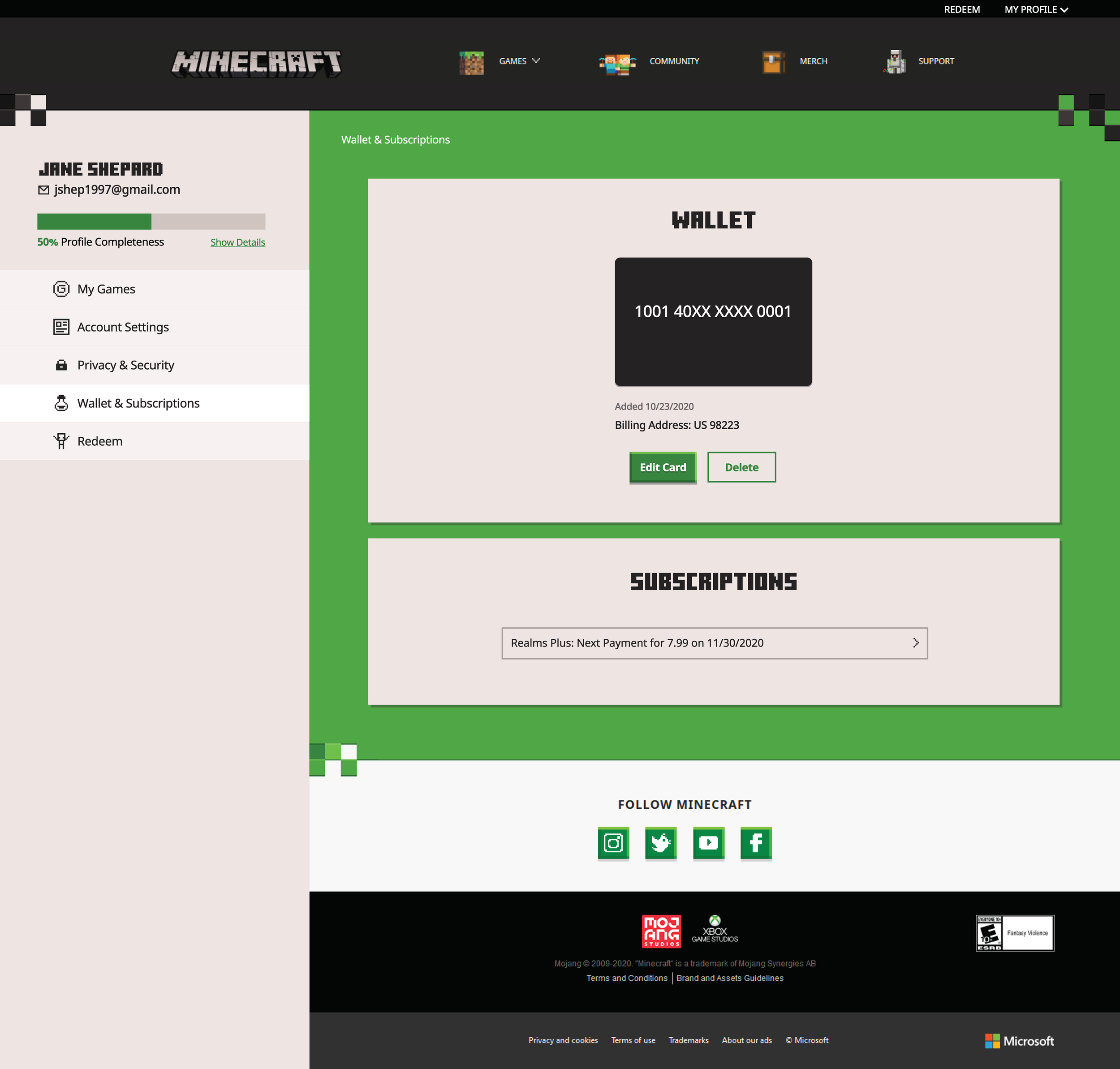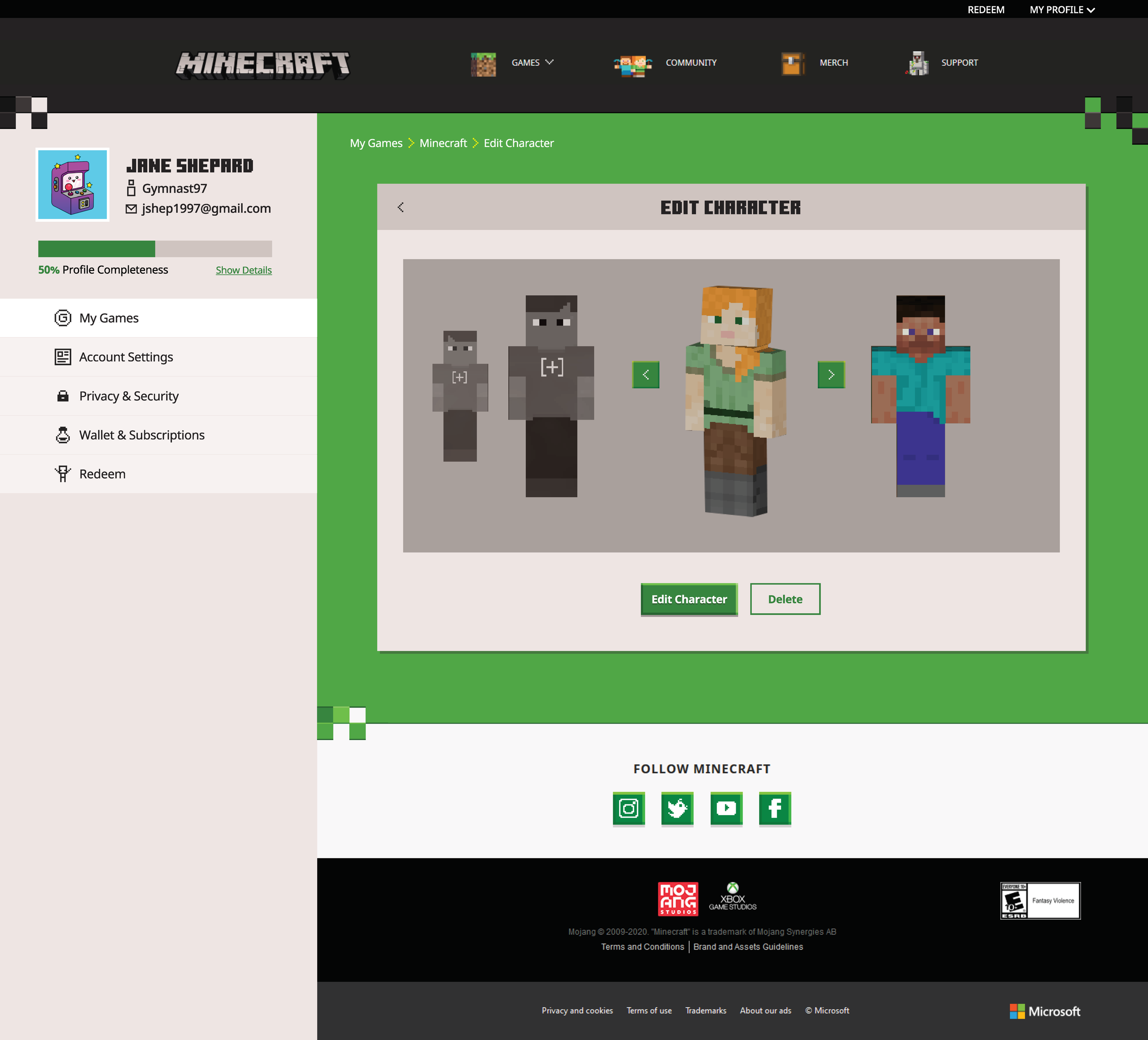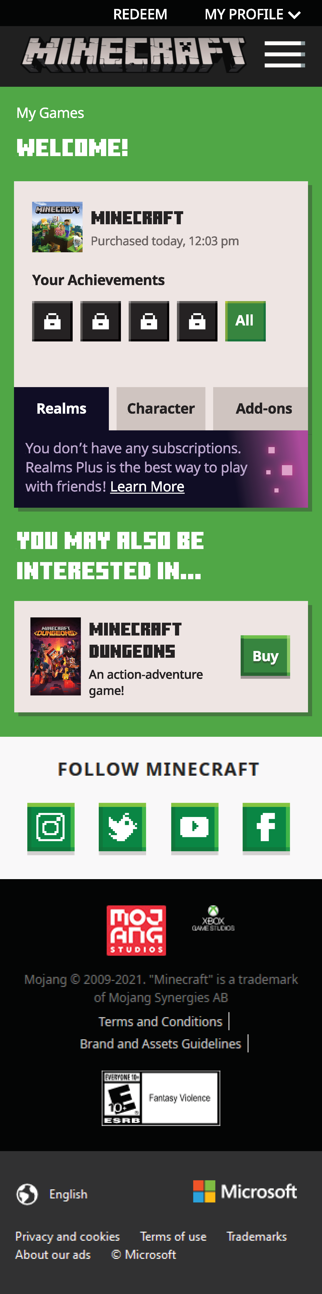 Directed the designs for an update to the Minecraft Account Experience on web and mobile. Players can manage their profile, view achievements, redeem game codes, manage realms, etc.