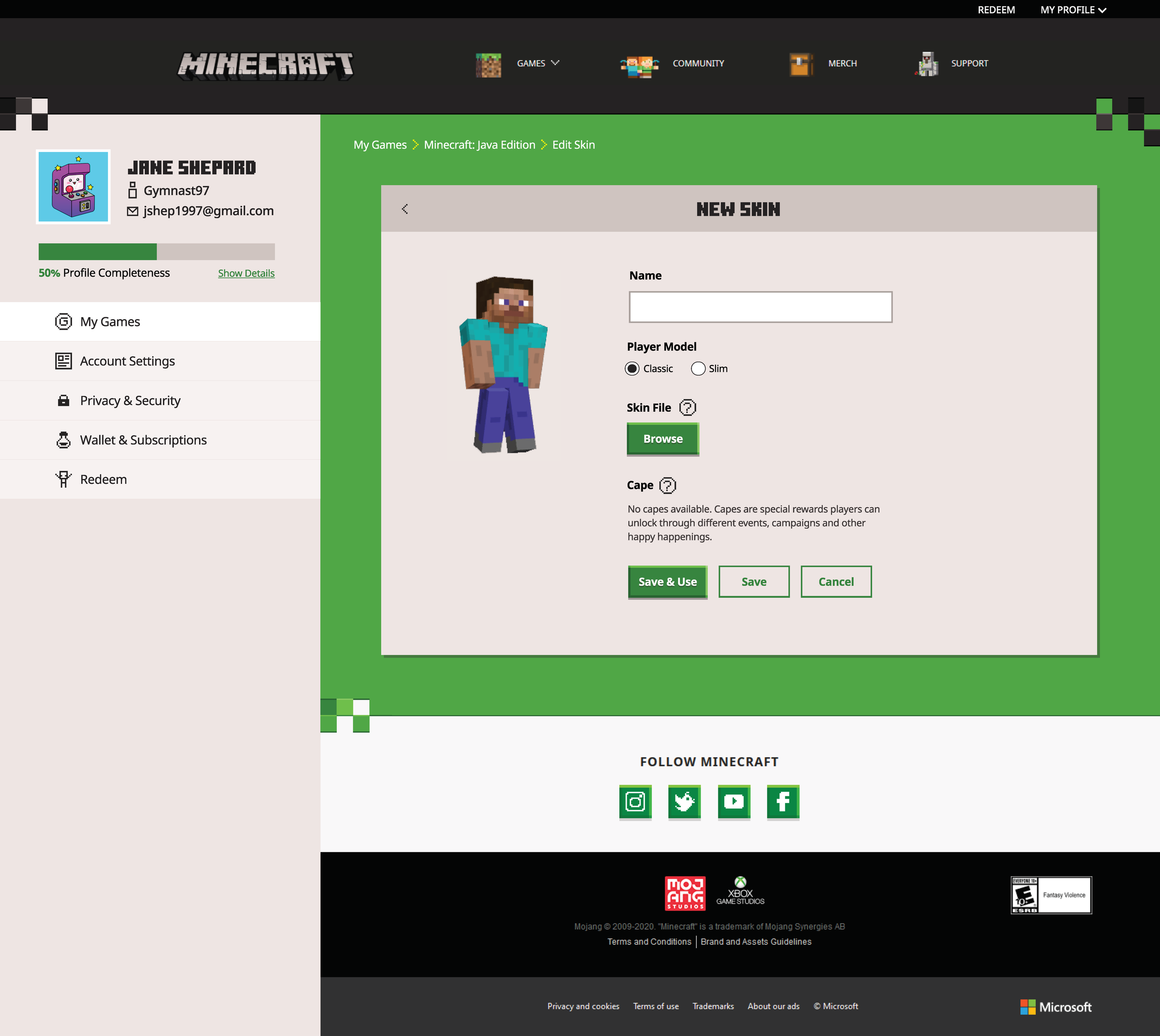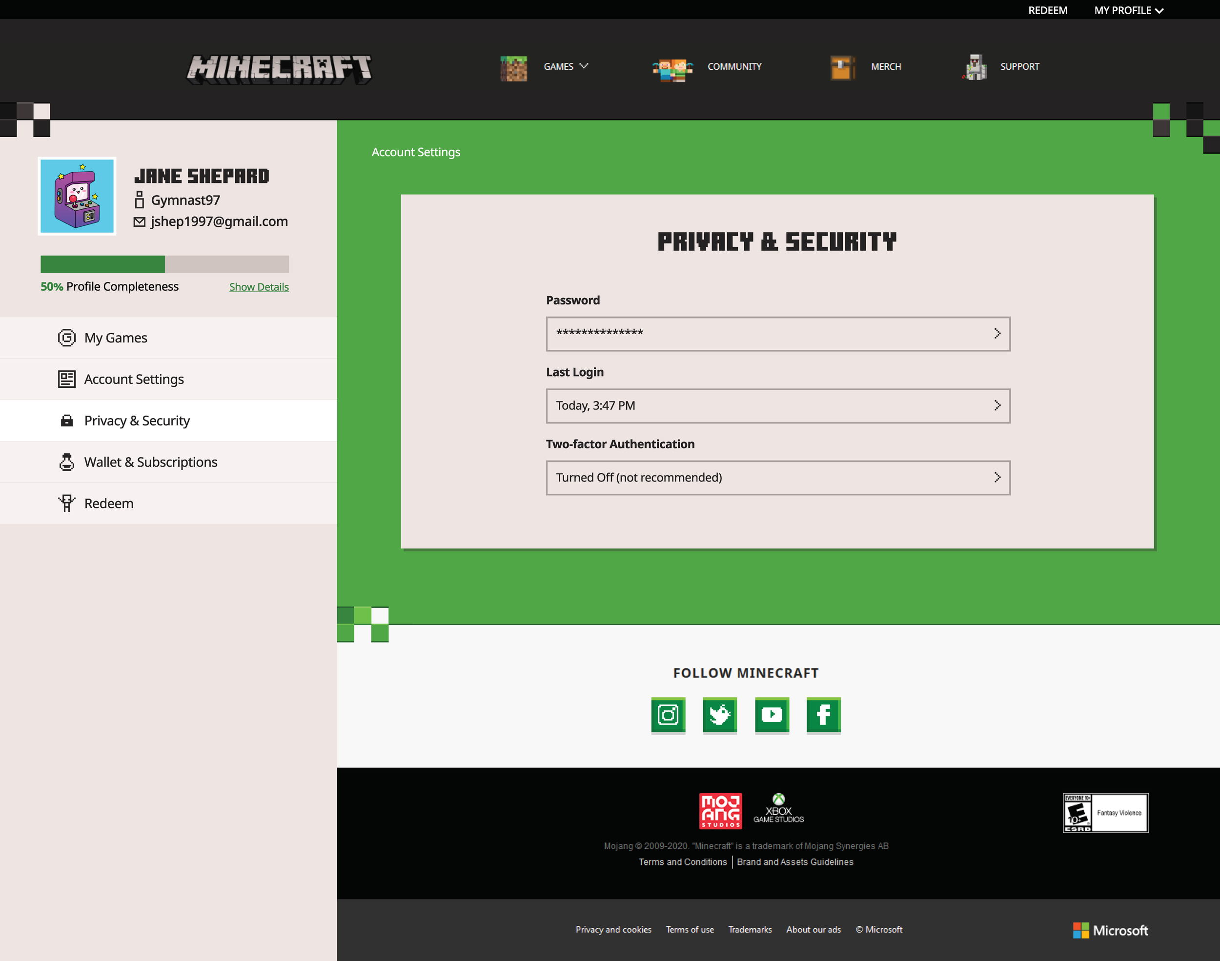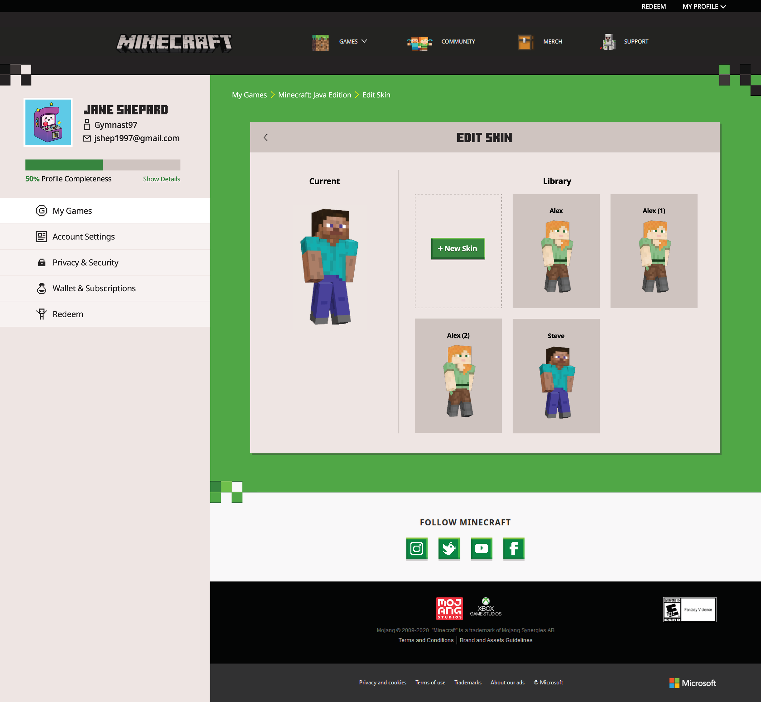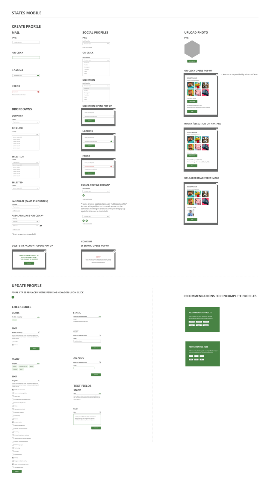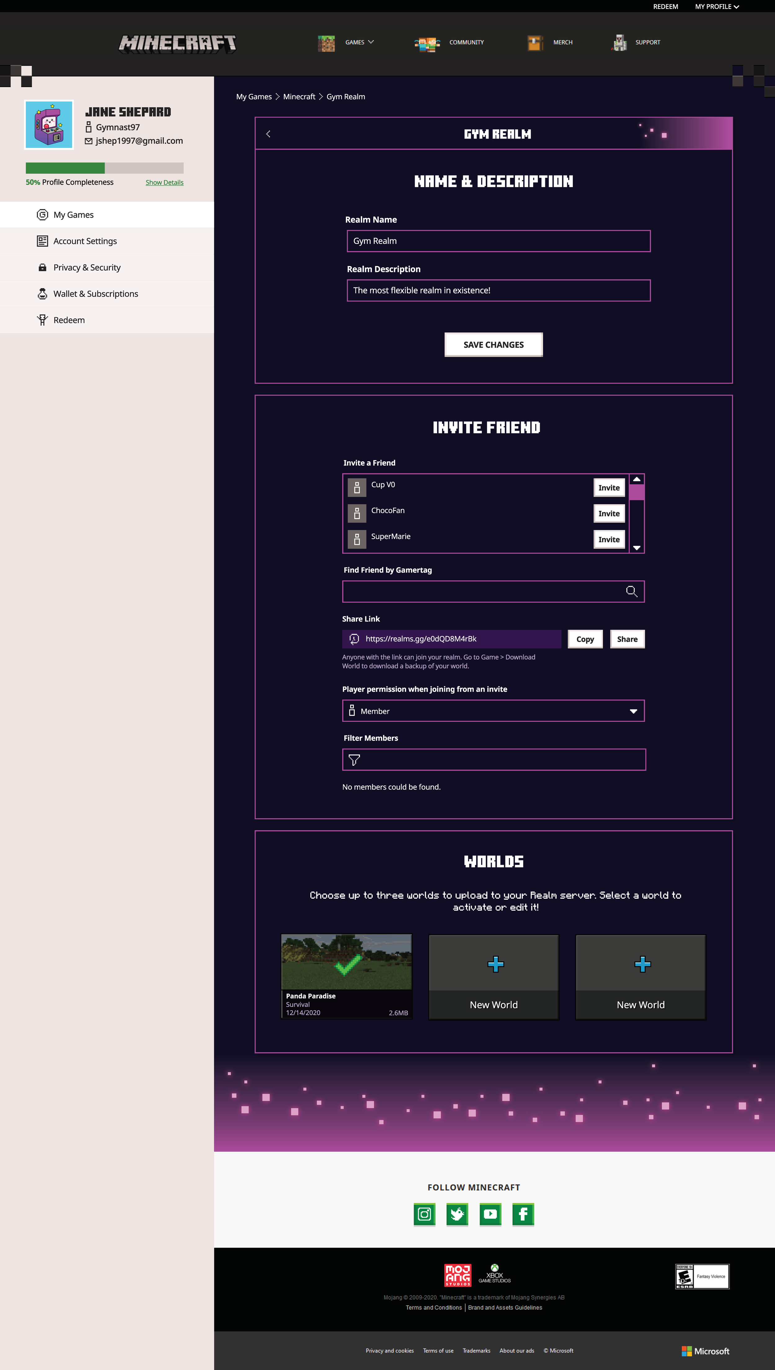 Directed the designs for an update to the Minecraft Account Experience on web and mobile. Players can manage their profile, view achievements, redeem game codes, manage realms, etc.
