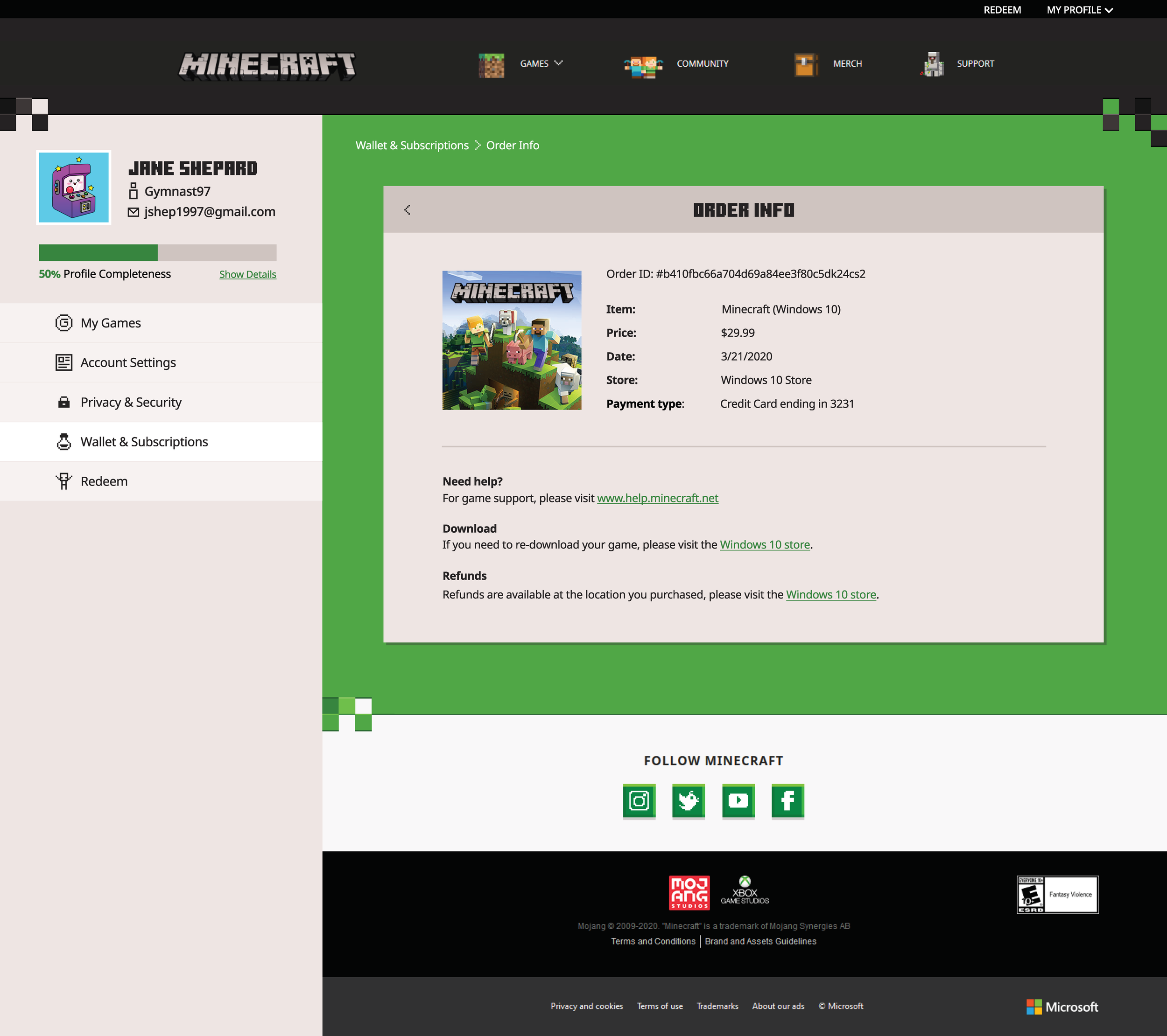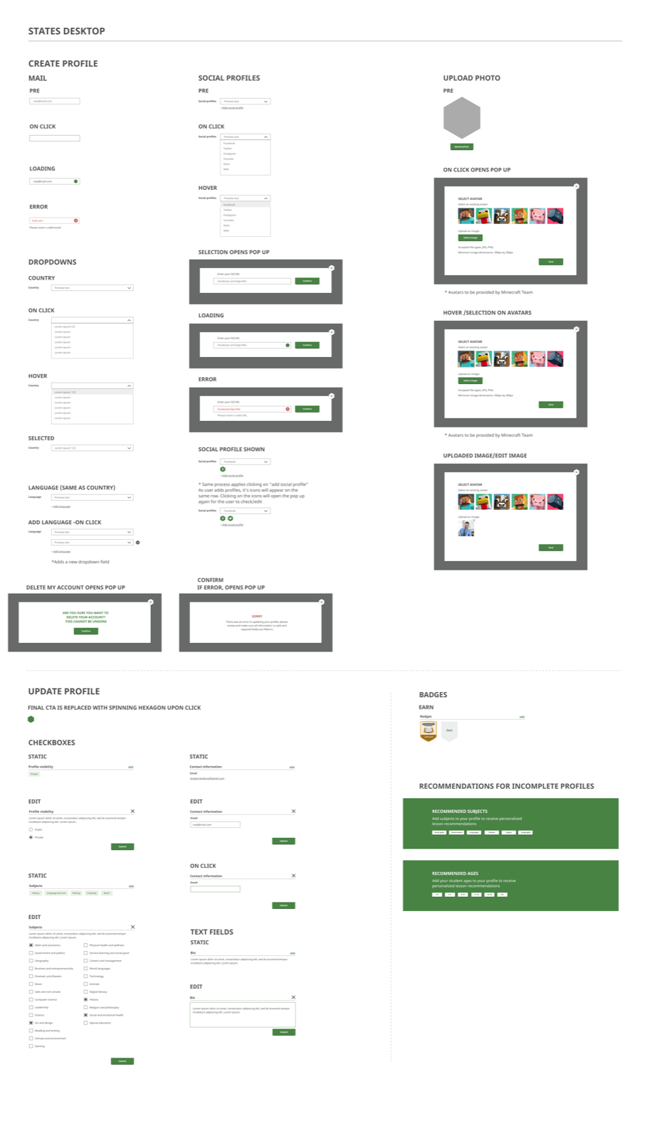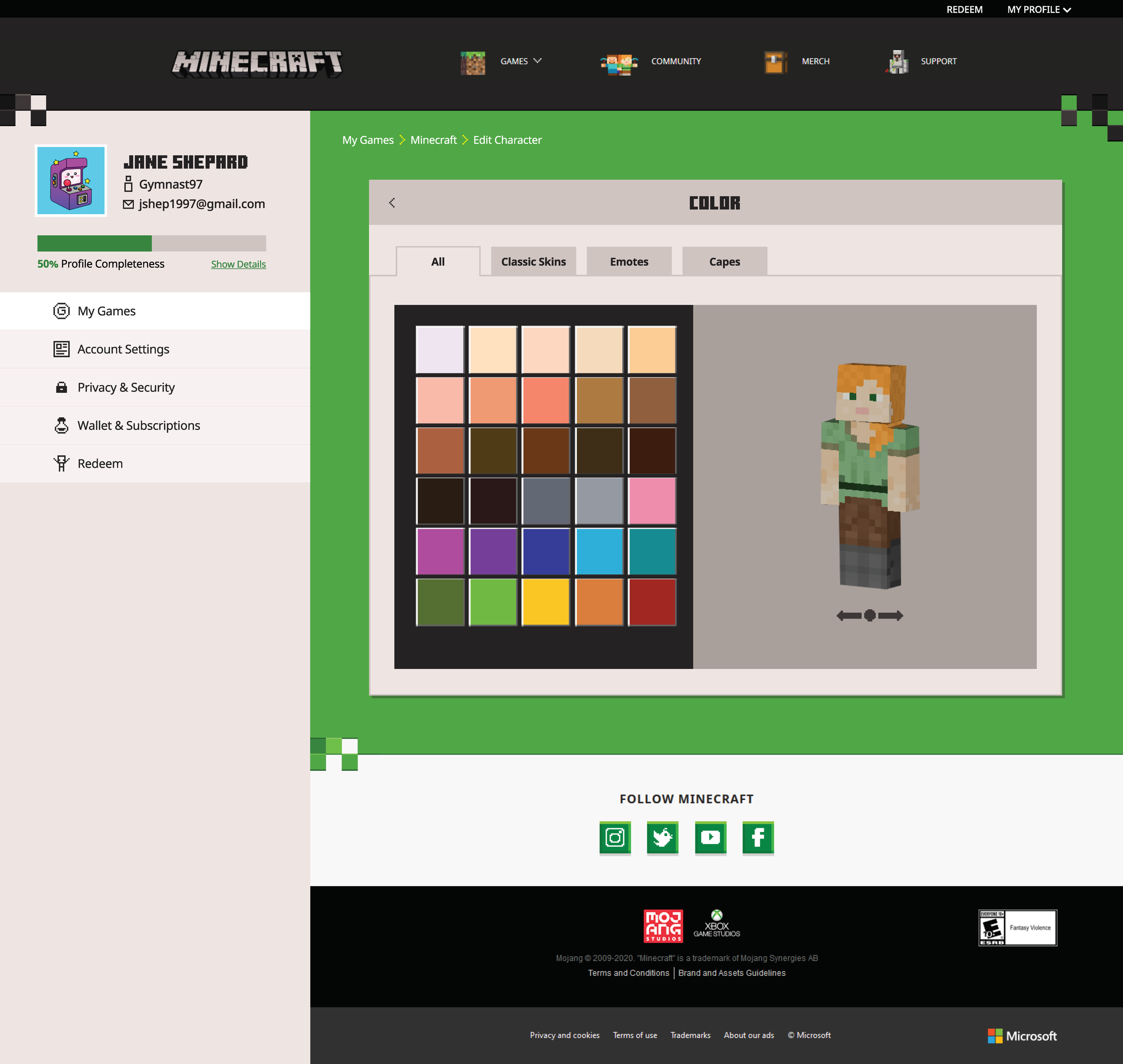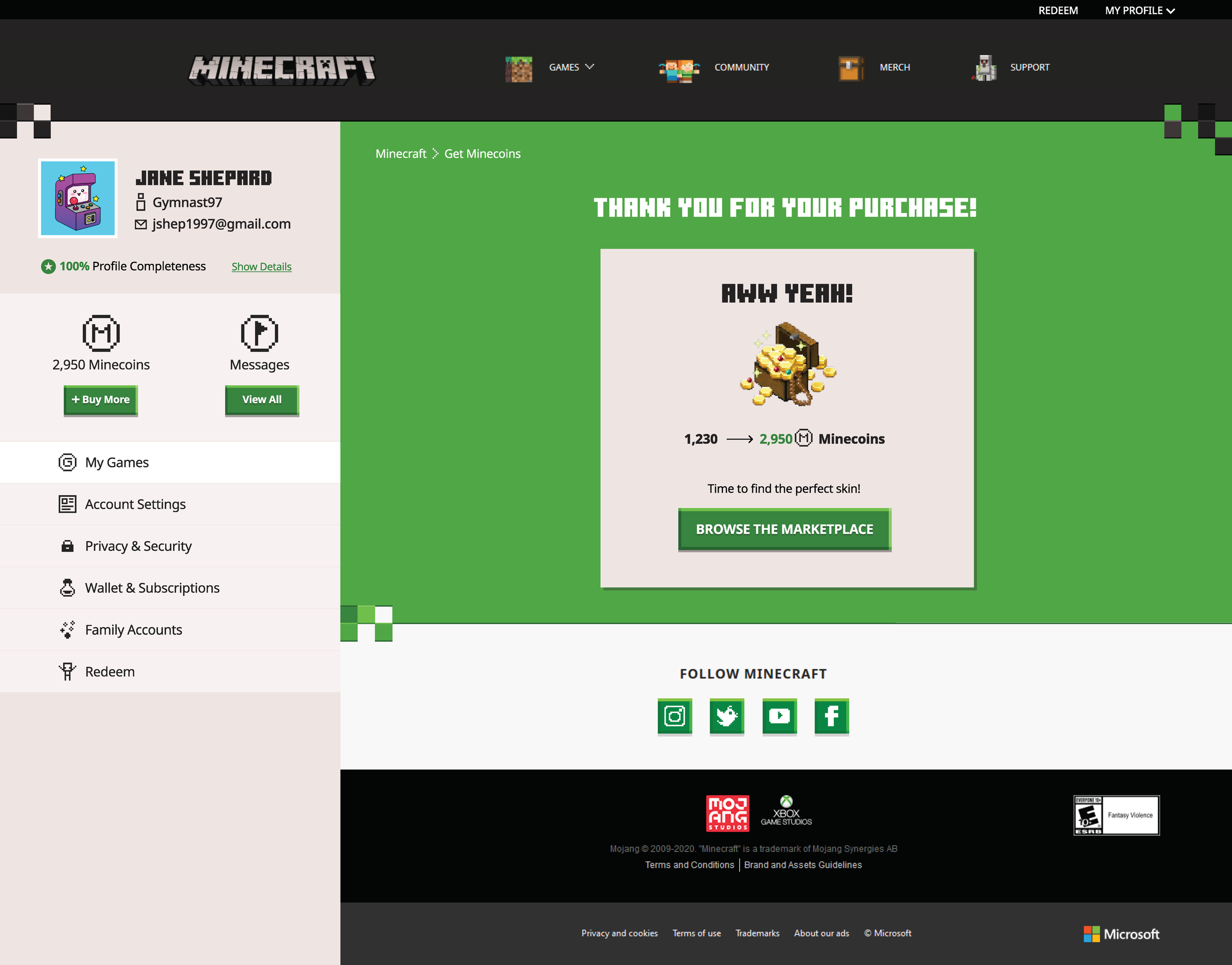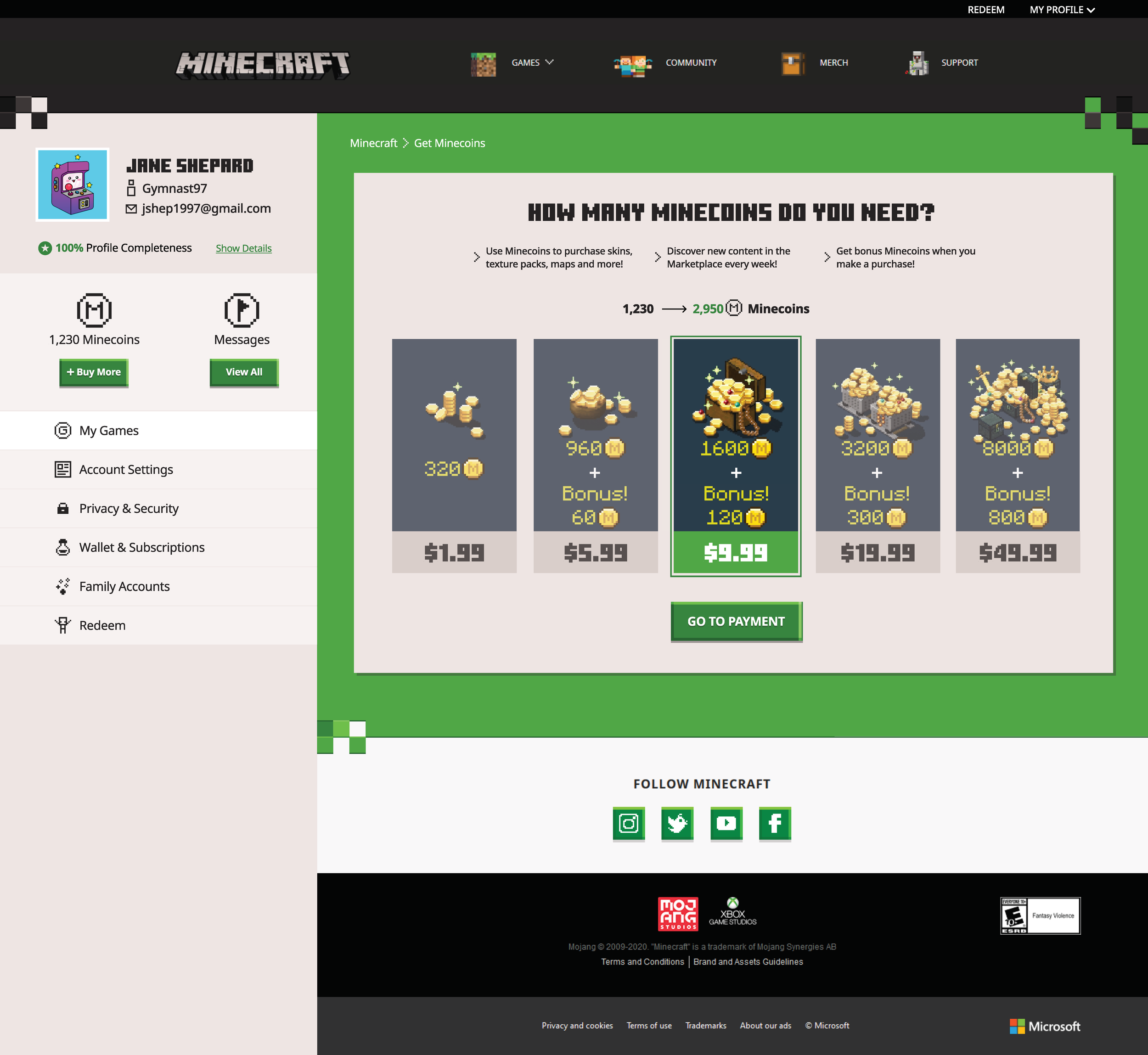 Directed the designs for an update to the Minecraft Account Experience on web and mobile. Players can manage their profile, view achievements, redeem game codes, manage realms, etc.