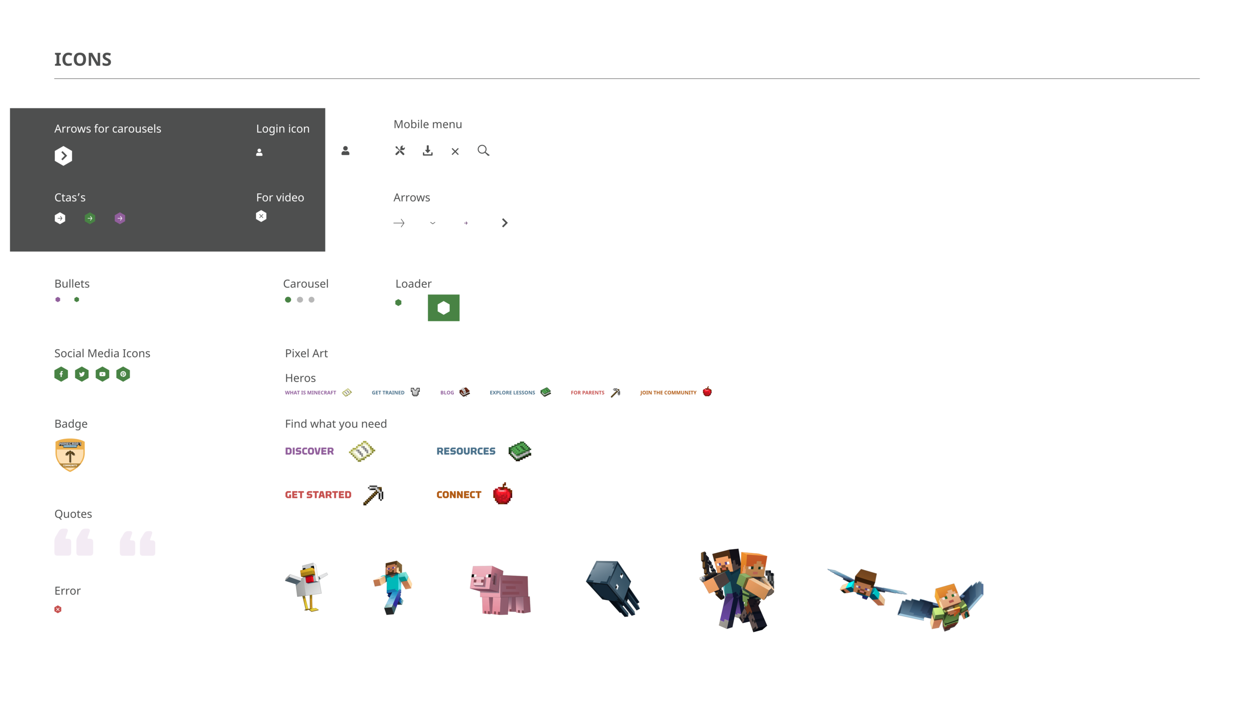 Collaborated with partner to update the Minecraft: Education website. Provided direct design guidance to ensure the website adhered to Minecraft: Education brand guidelines I had previously produced. (Site is still under development)